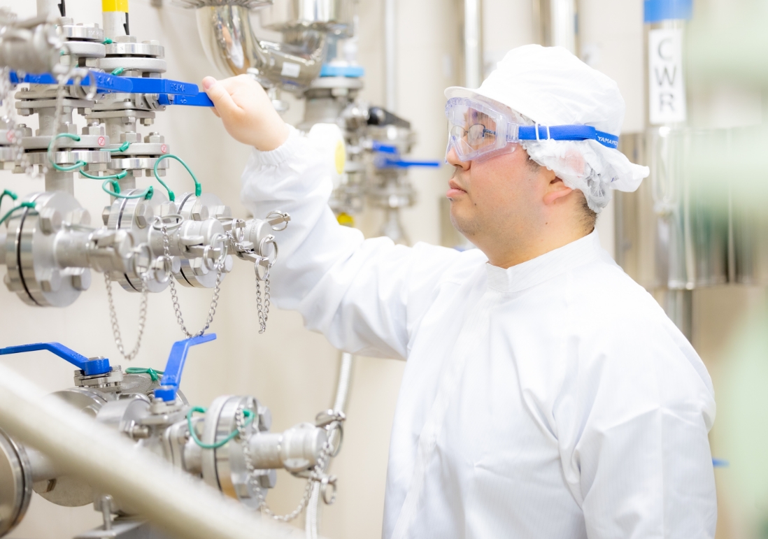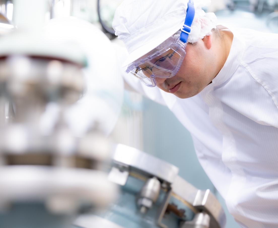 医薬品の有効成分である原薬を、合成、抽出、晶析、乾燥等の工程を通じて製造しています。現場を管理する立場として安定した品質・供給ができるよう、製造プロセスの改善を行い、より良い原薬製造・環境を作ることが責務です。大変なことではありますが、だからこそ得られる達成感も大きいです。