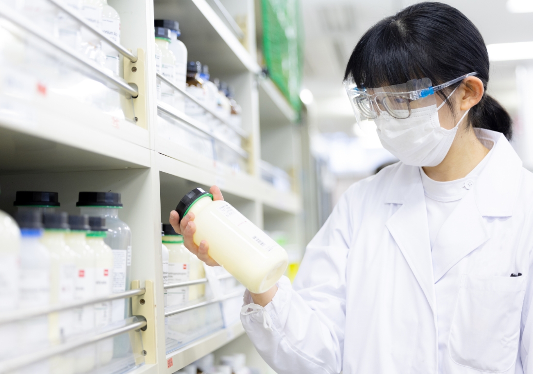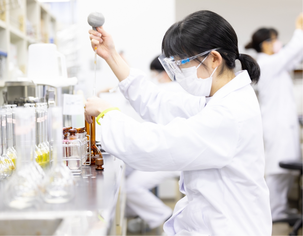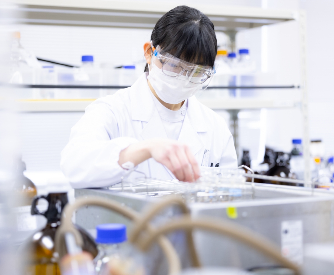 弊社が製造している医薬品は、錠剤をはじめとする固形製剤から、軟膏やローション剤などの半固形製剤まで多種多様な形状があり、数百種類にも上りますが、それぞれに有効成分が正しく含まれているか、品質にばらつきがないかを確認するための試験等を行っています。3年の使用期限の間に品質が保たれているかどうかの試験も手掛けます。異なる条件下で保管されている錠剤を粉砕して試液を加え、有効成分を抽出し、その含量を専用の機器で分析します。