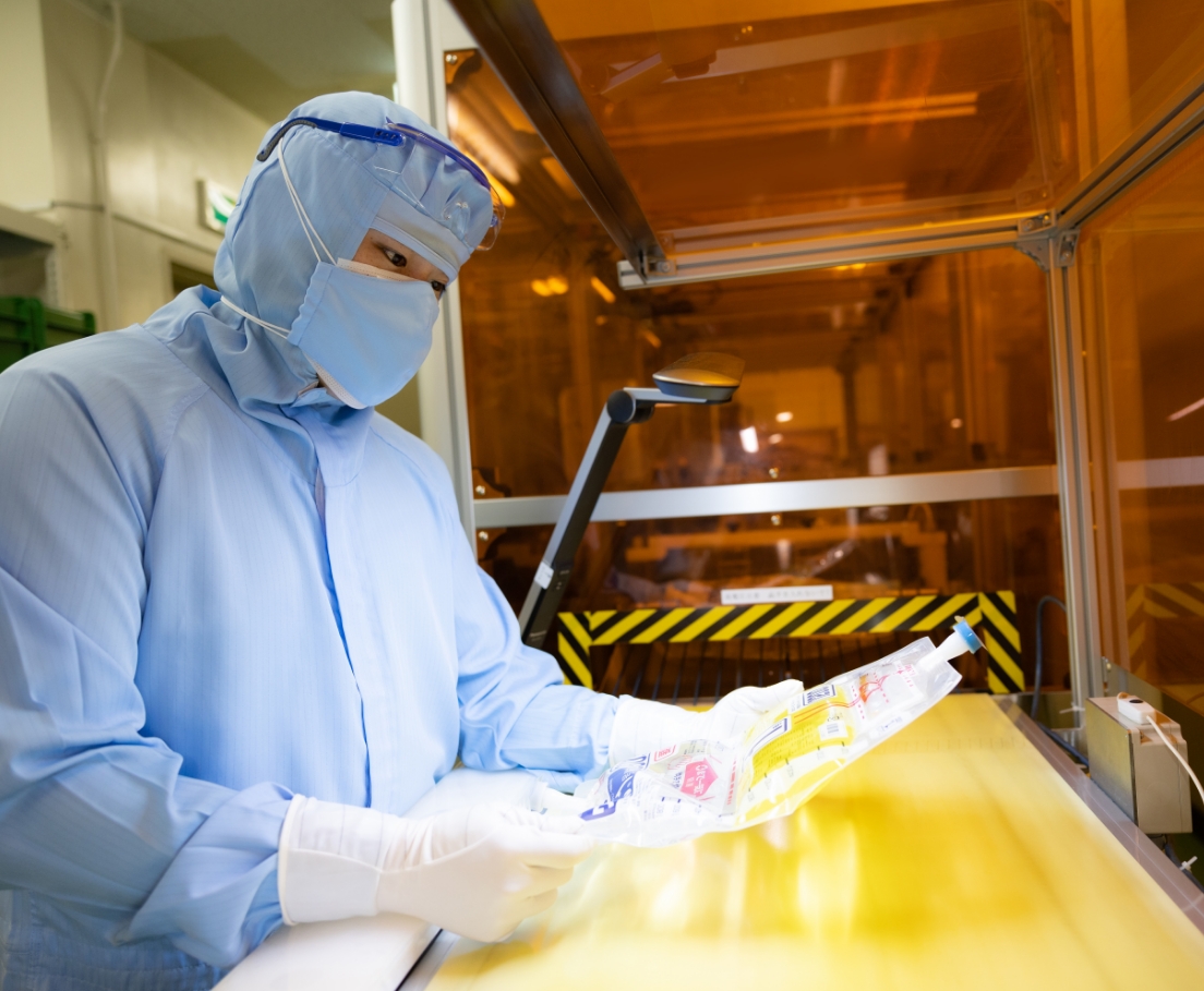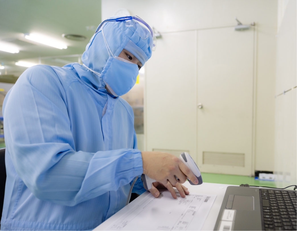 培地による菌の測定、資材のサンプリング、設備や室内の清掃といった製造環境の管理、調製液の受け入れから、各機械の運転やトラブル対応などの機械操作、定期的な部品の交換やグリスアップなど機械のメンテナンス作業の他、製造に使用した資材の収支や製造に関わる全ての記録を手掛けます。