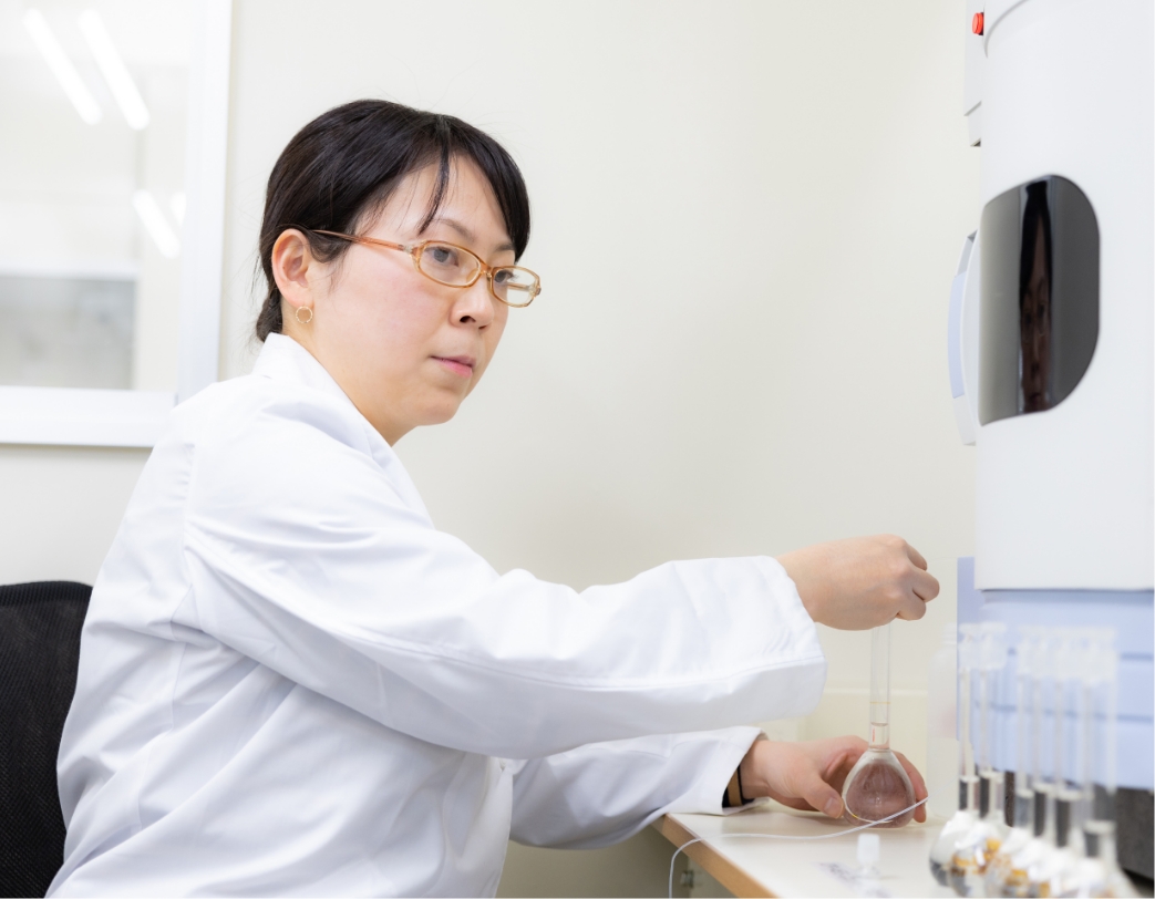 企業に属している以上、自分一人だけでは仕事は成り立ちません。わたしは現在、品質管理部で原材料試験を担当していますが、原材料グループのメンバーはもちろんのこと、QCのその他の製品グループメンバー、生物グループメンバー、そして製造やその他の部署の方々とも連携を取りながら仕事を進めています。そのため、協調性やチームワークをとても大事にしています。お互いが相手の立場や気持ちに寄り添い、お互いを頼りにし合える関係性を築いていきたいと思っています。