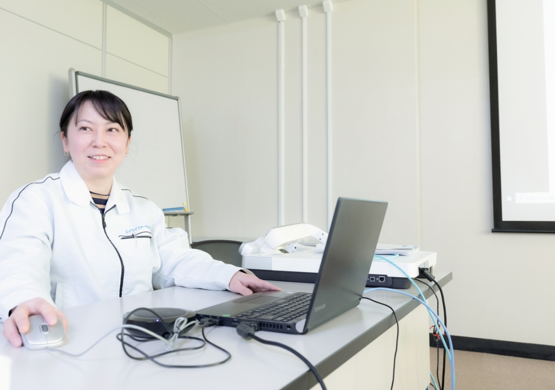 品質管理部は比較的若い社員が多く、意見交換を活発に行い、気兼ねなく質問や相談ができる部署です。立場や年齢に関係なく、人の意見に耳を傾けてくださる方も多く、入社当時から上司との距離も近く感じています。女性社員の比率も高く、フレックスタイム制度を導入しているので、女性にとっても働きやすい職場だと思います。また、経験年数にかかわらず、やる気があれば、どんどん新しい業務にもチャレンジできます。